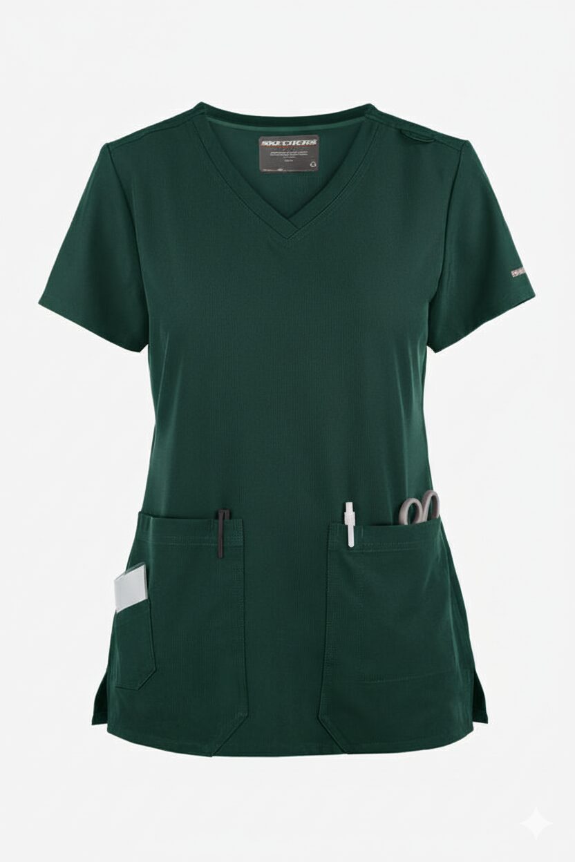 ¿Existe un límite para la cantidad de bolsillos? La blusa médica SKT025 Skechers by Barco con cuello en V cruzado cuenta con 6 bolsillos. Están ingeniosamente diseñados, por lo que el estilo sigue siendo favorecedor. Algo más que también es importante. La sostenibilidad es clave para Skechers by Barco. El tejido con elasticidad cuatridireccional contiene poliéster de botellas de plástico recicladas, por lo que cada prenda está hecha de 7 botellas de plástico.